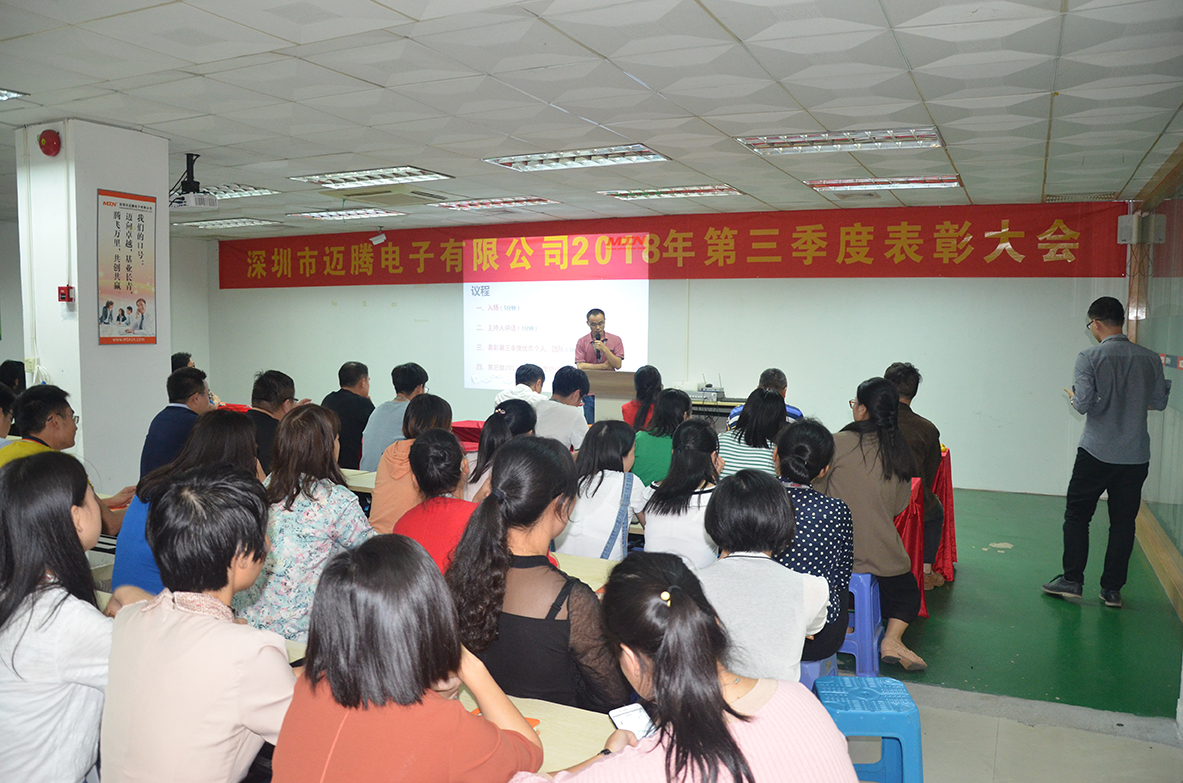11月14日,邁騰電子2018年第三季度表彰大會在公司培訓室隆重舉行,深圳全體員工參加了此次會議。本次大會簡要總結第三季度工作,并對優(yōu)秀團隊進行表彰,同時強調(diào)第四季度工作重點。